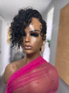 Bold, elegant, and timeless — the Midnight Muse Full Lace pixie Wig is a jet-black beauty made for women who love a little extra length and drama in their pixie style. Designed with a soft curl pattern, a longer bang in the front, and a slightly elongated nape, this wig gives you the perfect mix of sophistication and everyday wearability.