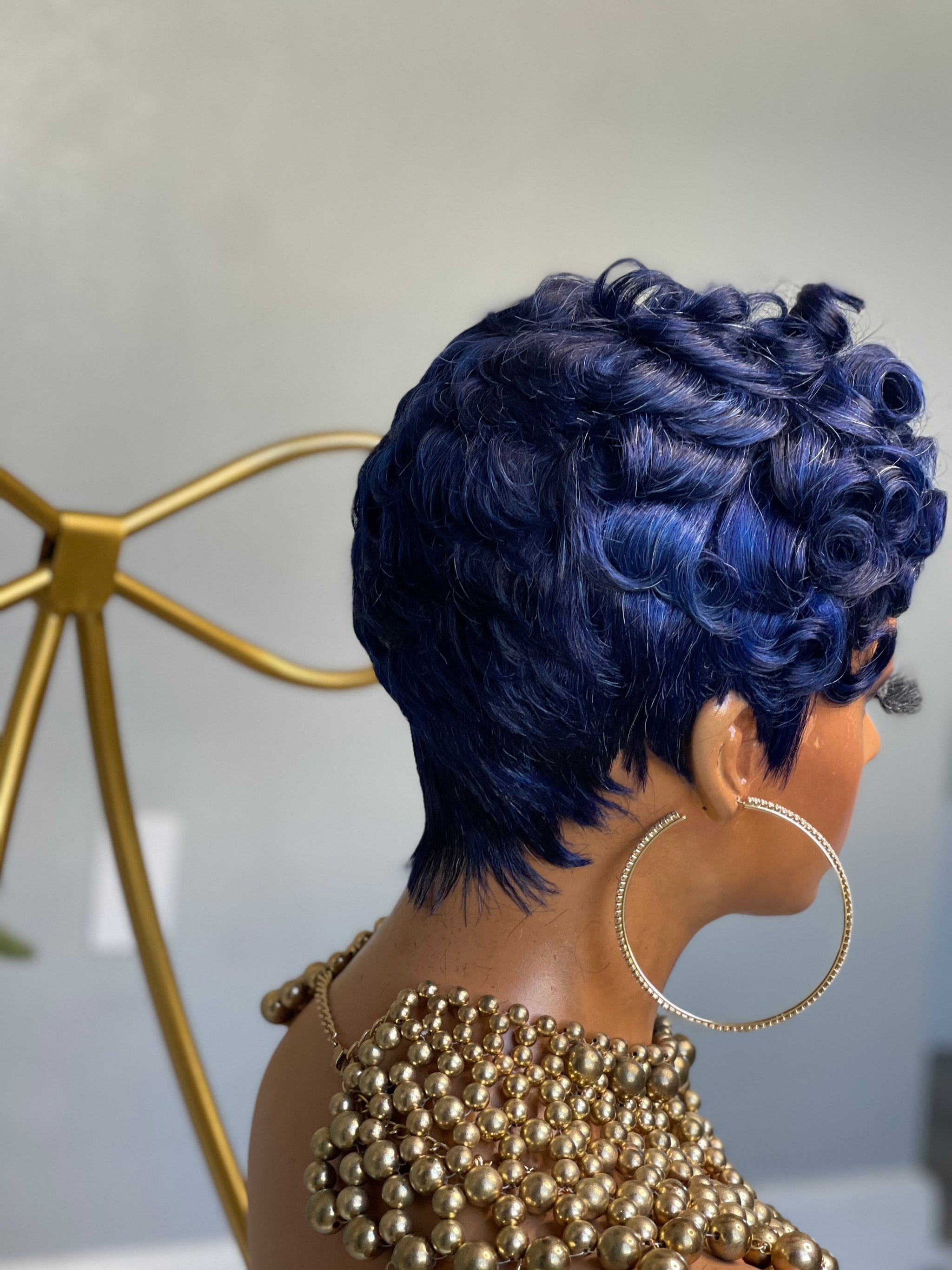 This low-maintenance pixie is a must-have 🙌🏾 she doesn't have any lace which means she can pop on and off with little to no work. She comes as pictured. She is made with #613 human hair and is cut and styled for this look.