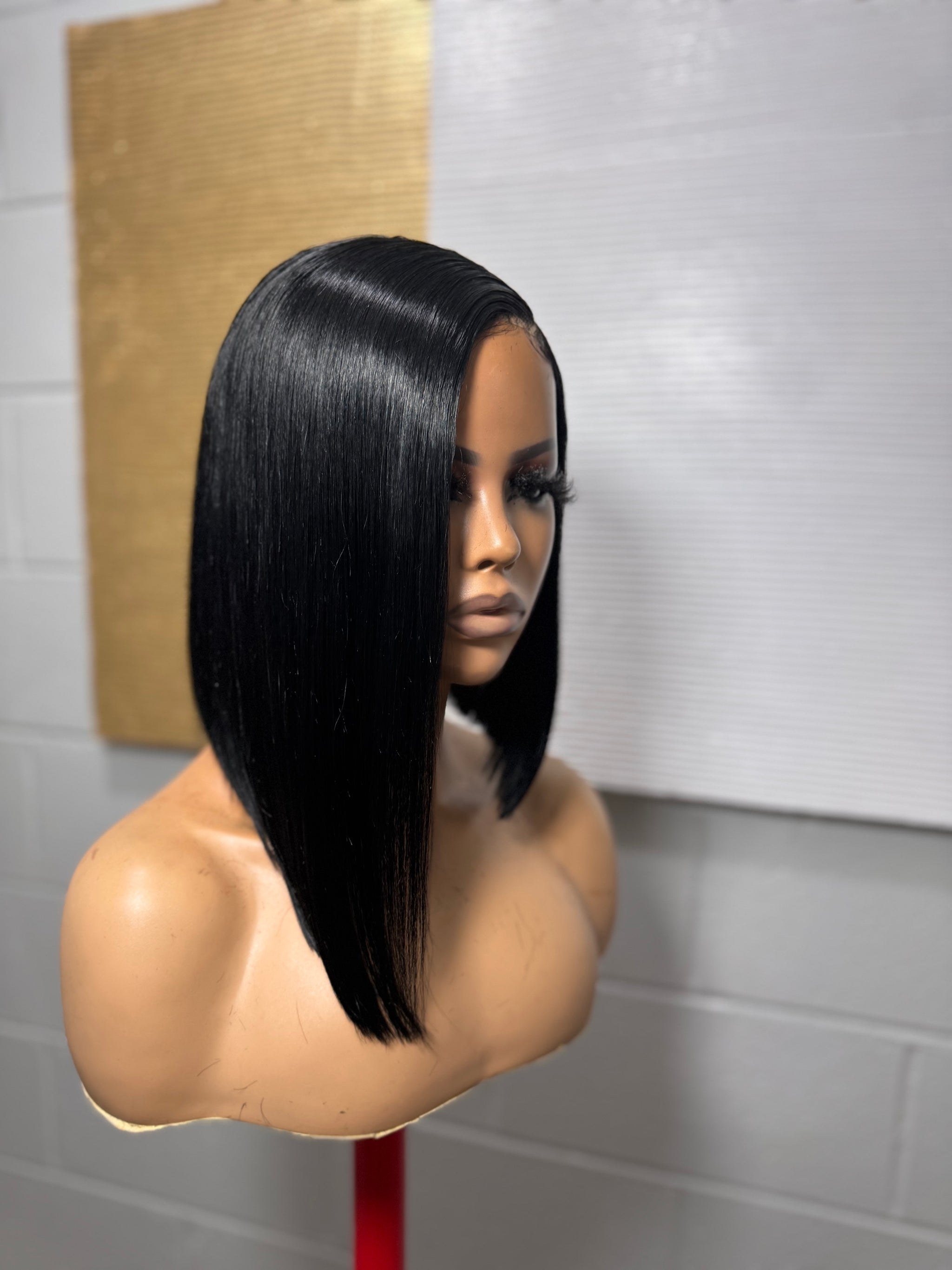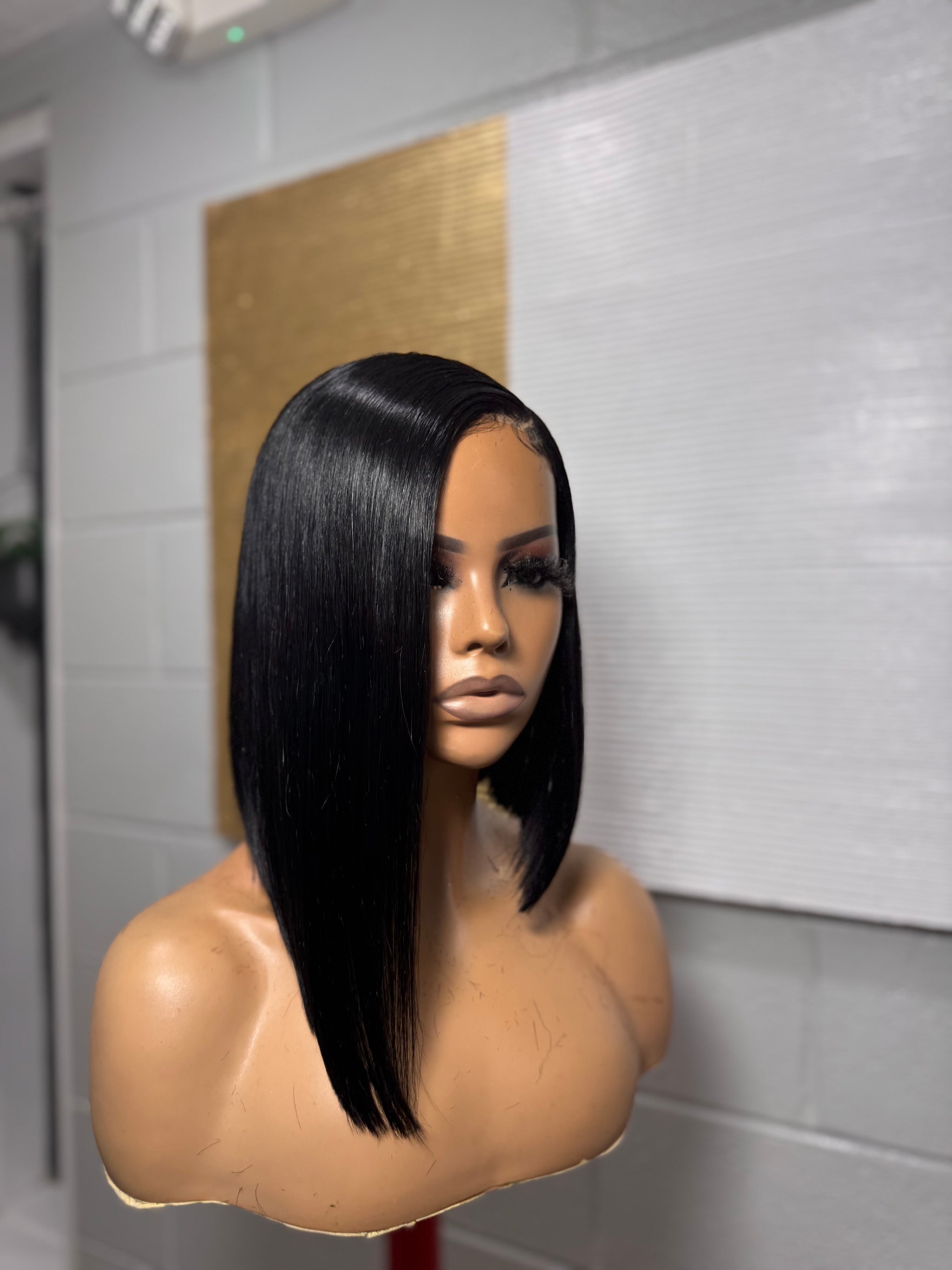 Silk Black Bob is that clean everyday look that never goes out of style. This jet black bob is short in the back, longer in the front and lays perfectly for a sleek finish. It is made on a four by four closure with a secure band and wig combs so you can wear it glueless. It is the perfect length for anyone who loves a classy bob without extra hair.