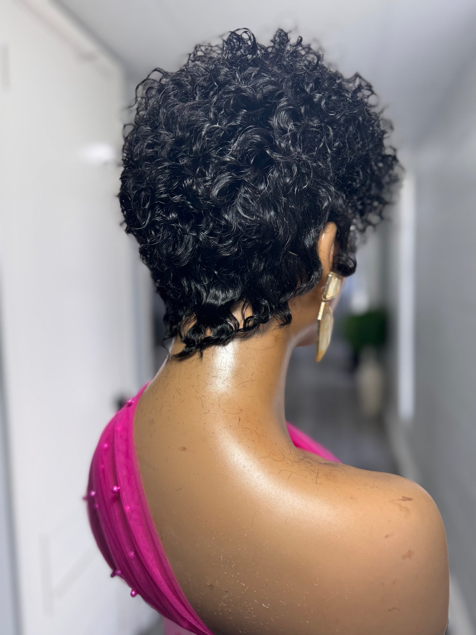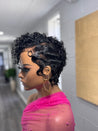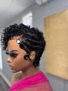 Step into effortless style with our Pineapple Curl Pixie Wig, a jet-black beauty designed for women who love a bold yet natural look. This unit features a unique curl pattern that falls between a kinky curl and an exotic/Spanish wave, giving you a soft, full texture that’s versatile and flattering. Styled with finger waves on the sides and a little lift at the top, this pixie cut is the perfect mix of chic and playful.