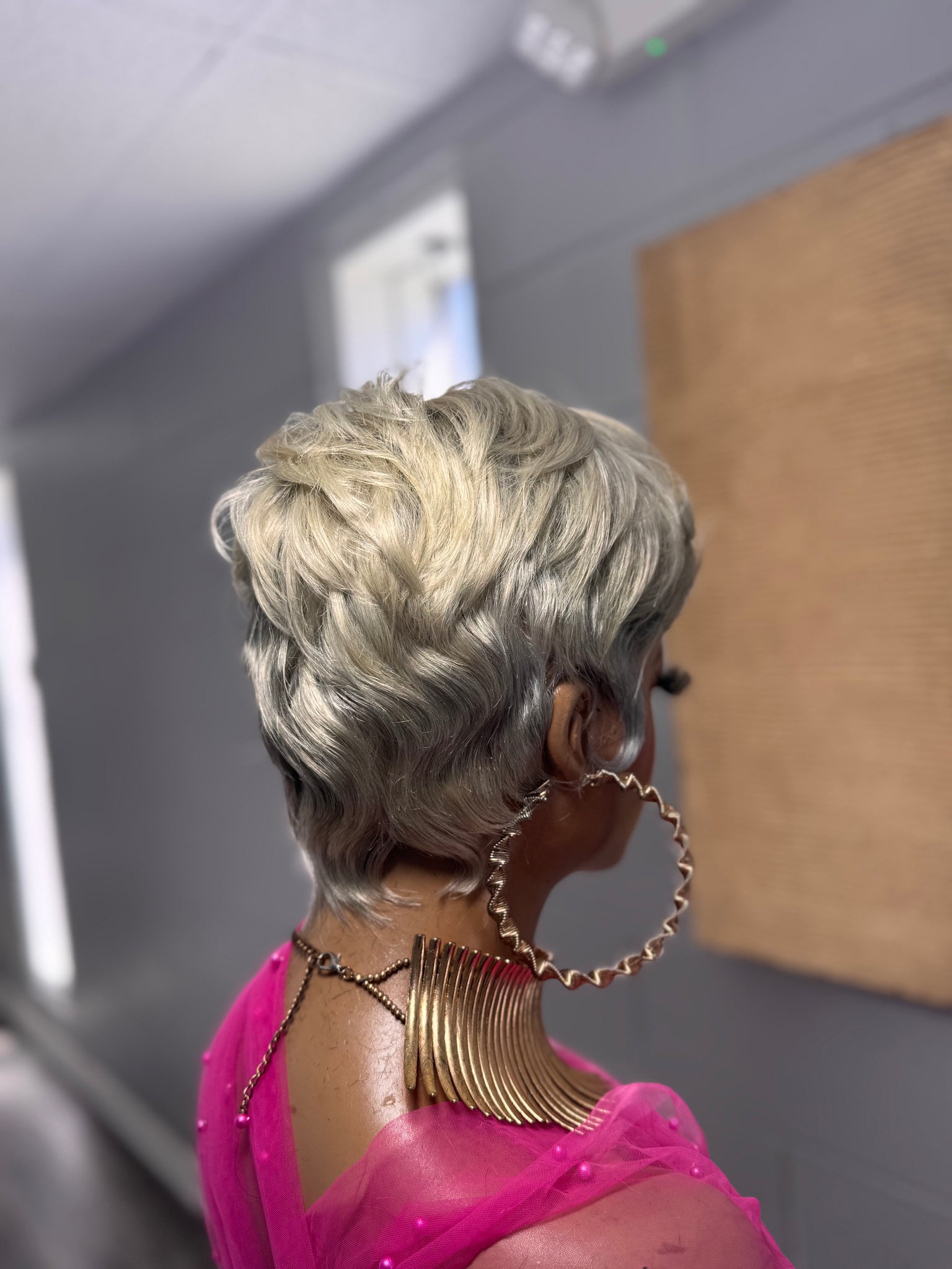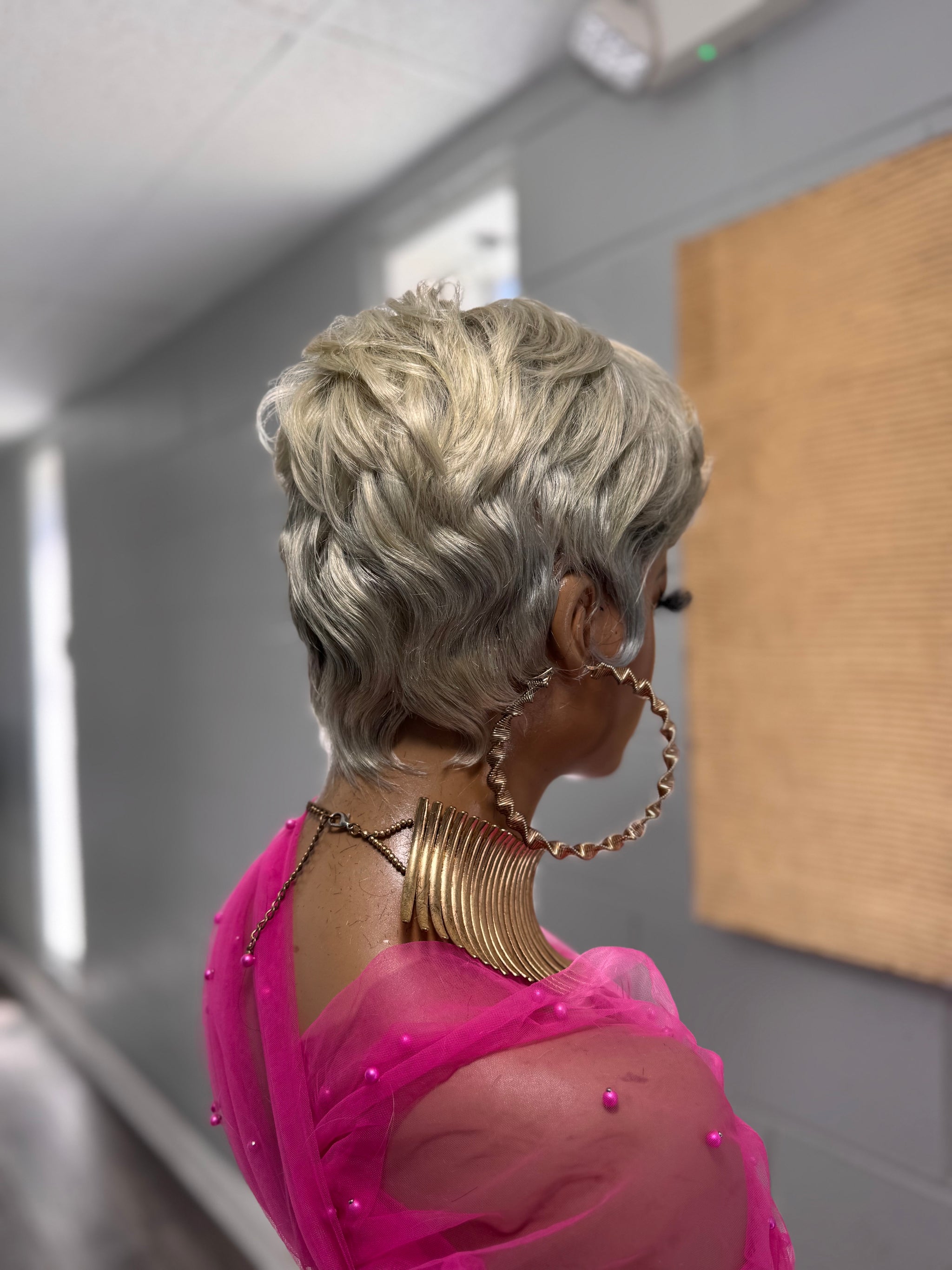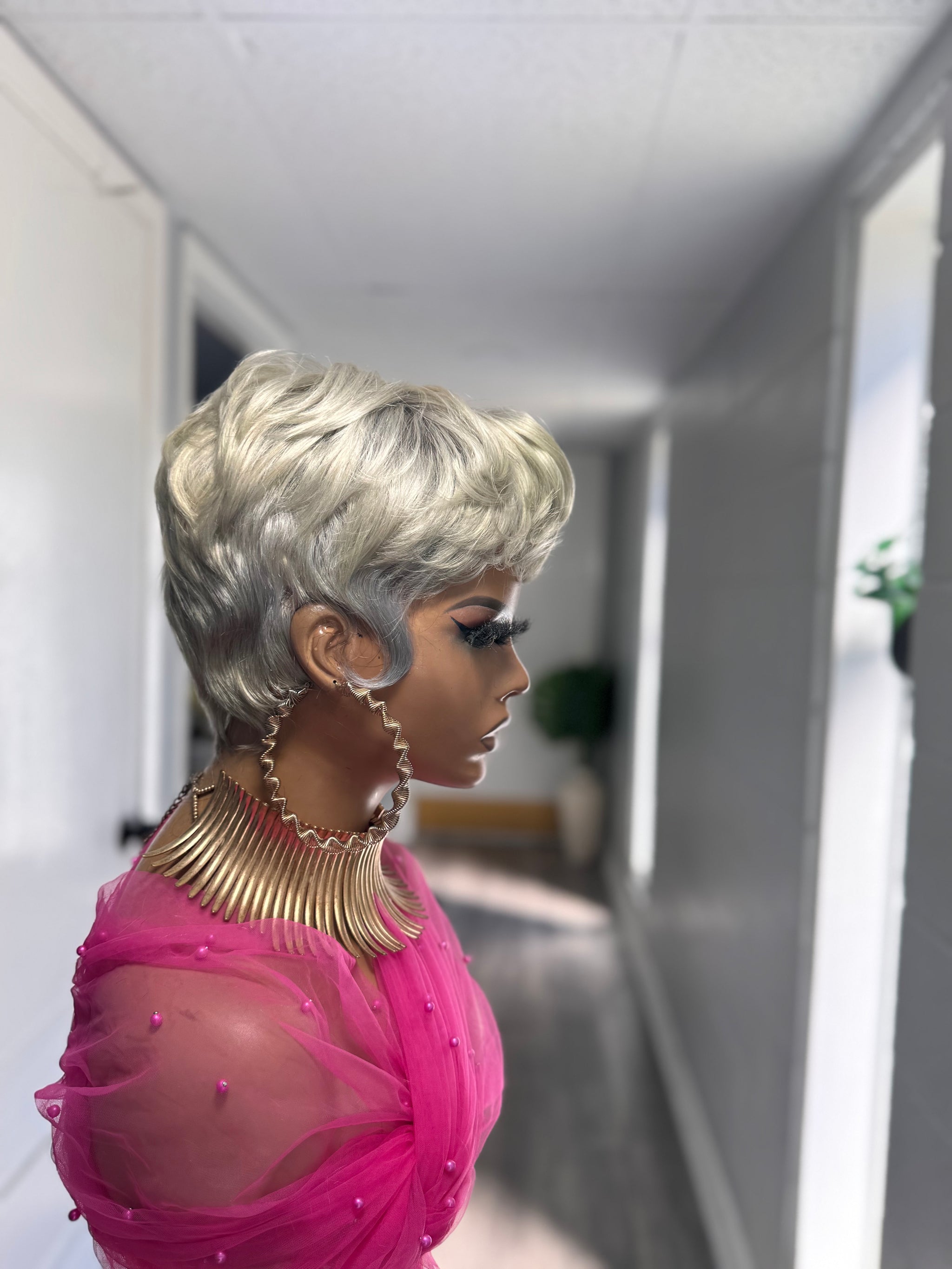 Keep it sleek and timeless with Platinum Chill, our shorter icy platinum pixie designed for bold yet effortless style. This wig features clean finger waves on the sides with a softer, flat-ironed curl at the top, giving you a chic finish that’s easy to maintain.